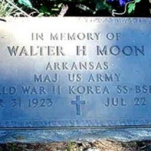 Walter Moon was born on March 31, 1923, in Rudy, Arkansas. He enlisted in the U.S. Army on June 6, 1944, and after seeing combat in Italy, he received an honorable discharge on July 17, 1946. He then attended the University of Arkansas, and was commissioned a 2d Lt of Infantry through the Army ROTC program there on June 1, 1950. After completing Infantry Officer training at Fort Benning, Georgia, Lt Moon served with the 4th Infantry Division in West Germany from June 1951 to June 1954, followed by service as Professor of Military Science and Tactics with the Army JROTC Program at Savannah High and Commercial High Schools in Savannah, Georgia, from June 1954 to June 1957. Capt Moon attended Advanced Infantry training at Fort Benning from June 1957 to June 1958, and then served as Aide to the Deputy Commander of Eighth Army in South Korea from June 1958 to June 1959. His next assignment was with the 1st Special Forces Group at Fort Bragg, North Carolina, from June 1959 until deploying to Southeast Asia in early 1961. He was captured and taken as a Prisoner of War in Laos while serving as an advisor with the 7th Special Forces Group, Military Advisory and Assistance Group Laos, on April 22, 1961. After an escape attempt, Maj Moon was executed by his captors on July 22, 1961. His remains have never been returned to the United States.